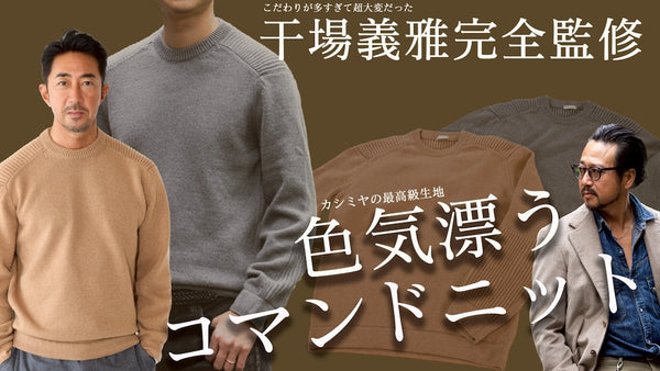 nomiamoから、干場義雅氏のリクエストで誕生したカシミヤコマンドニットが登場しました。ミリタリー由来の「コンバットニット」を上質なカシミヤで再構築。異なる編地で補強パッチを表現し、武骨さの中に上品さを宿した一着です。柔らかな肌触りと軽やかな着心地で、大人のカジュアルを格上げします。