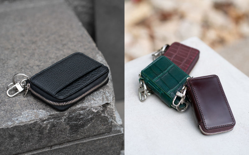 THE SOLEのスマートキーケースに新型、新色が追加されました。従来展開のトリヨン・モーリス ブラックにカードホルダー機能が、さらにクロコダイルにグリーンとワイン、コードバンにバーガンディが新登場。職人技が宿るシンプル構造に便利さが加わった、上質な日常を彩る逸品です。
