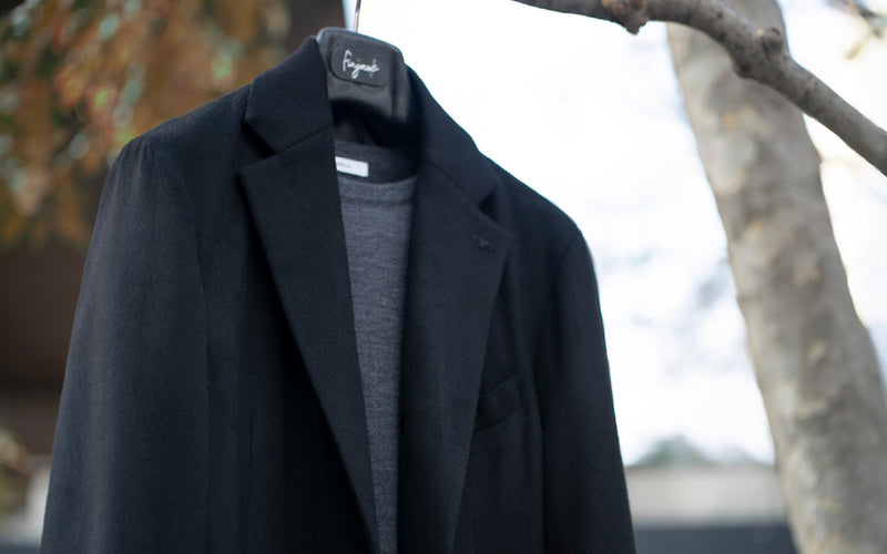 Finjackのブラックカシミヤジャケットがまもなく再入荷します。上質なカシミヤを使用し、副素材を最小限に抑えた軽量仕立ては、羽織った瞬間に違いを感じる心地よさ。滑らかな落ち感と柔らかなフォルムが自然な上質さを生み、ナポリ仕立ての丁寧な作りがほどよく存在感を添える一着です。