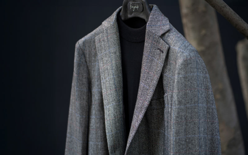 Finjackの名作・グアナコカシミヤジャケットに新たにライトグレーのウィンドウペーンチェックがまもなく登場。好評につき、グレーチェックと無地ブラックも再入荷いたします。希少なヴィンテージグアナコ素材が放つ柔らかさと上質感は格別。冬の装いを格段に引き上げる特別な一着です。