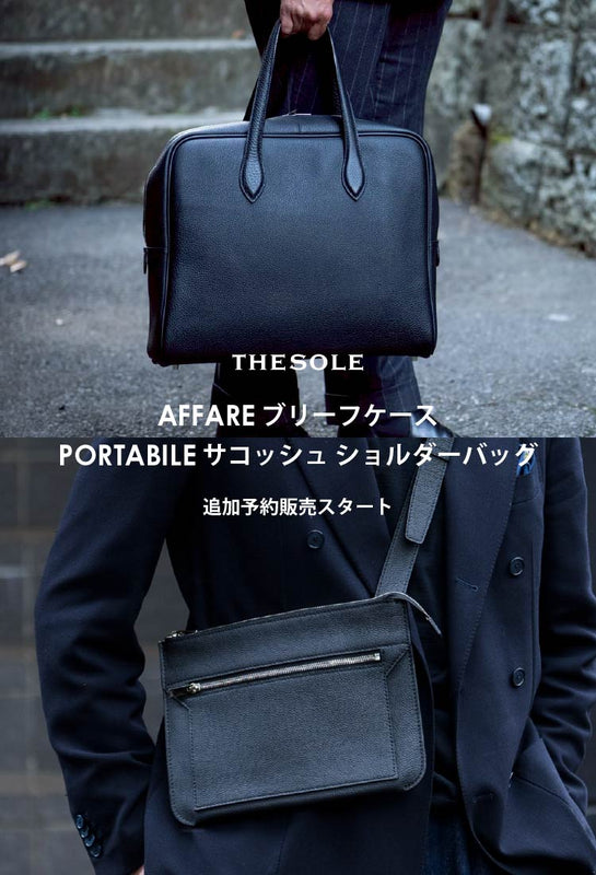 世界最高峰タンナーのトリヨン・モーリスを贅沢に使用したTHE SOLEの「AFFARE」ブリーフケース、「PORTABILE」サコッシュの追加予約販売をスタートしました。張りと柔らかさを備えた上質なレザーが、日常からビジネスまで装いを格上げします。